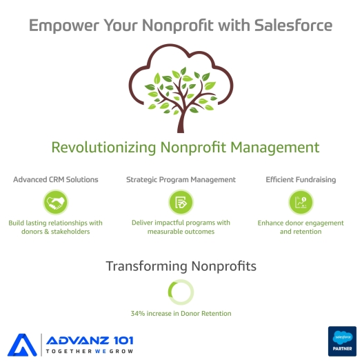 Salesforce’s Nonprofit Cloud, by Advanz101, is not just a technological solution but a catalyst for nonprofit transformation. This partnership equips organizations to enhance their operations, increase their impact, and achieve their missions more effectively. In the hands of Advanz101, Salesforce Nonprofit Cloud becomes a powerful engine of change, propelling nonprofits towards a more efficient, impactful, and sustainable future.
